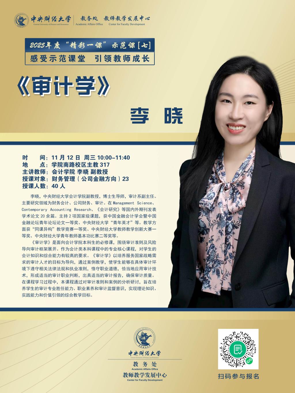“精彩一课”示范课2025年第七期:李晓《审计学》11月12日